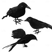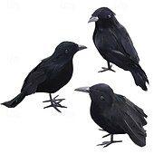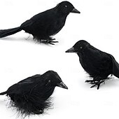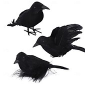 More information about 3 Pack Halloween Black Feathered Crows, Black Crows with Real Feather Halloween Decoration for Indoor Outdoor