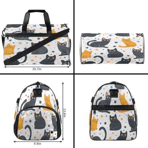 sought-after ! Gym Bag for Men & Women with Shoe & Wet Compartment - Duffel Bags for Travel, Sports, Fitness,Workout Cats Black and Yellow Sports Bag
