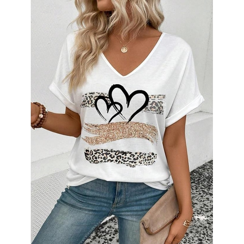 Why Choose Women's T Shirt Ombre Heart Leopard Casual Short Sleeve V Neck Regular Tops Daily Going out Beach Wear Print White Summer?