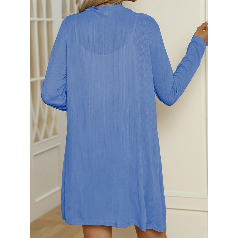 Women's Casual Jacket Comfortable Breathable Buttons Casual Plain Vacation Street Casual Daily Wear Single Breasted Long V Neck Regular Fit Long Sleeve Outerwear Black White Blue Summer Spring 11