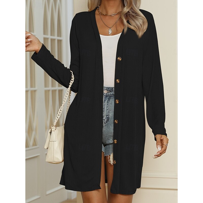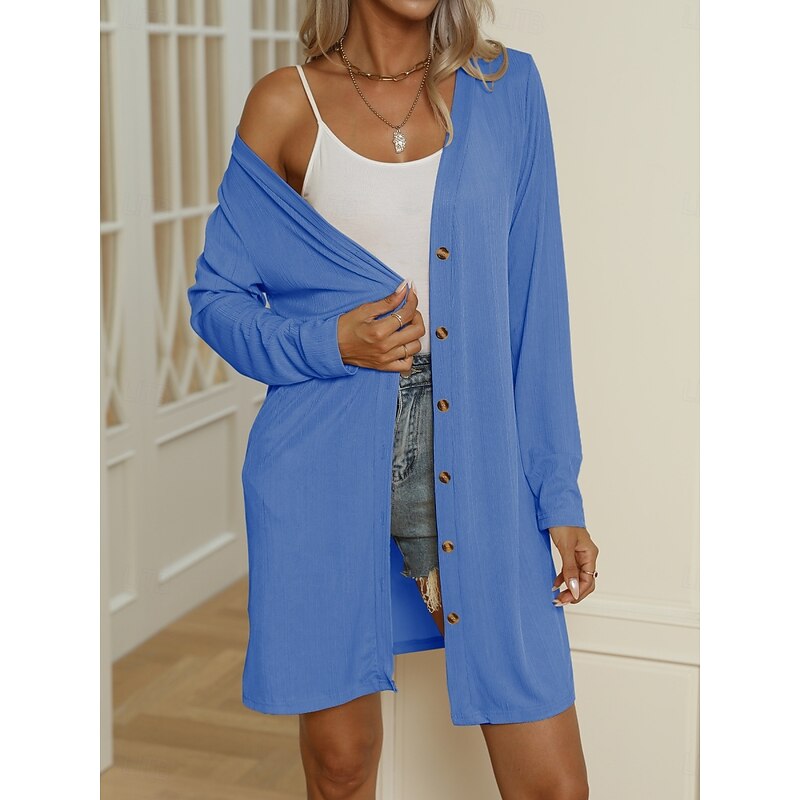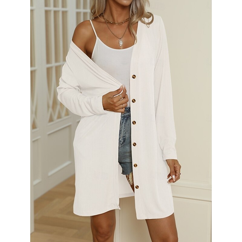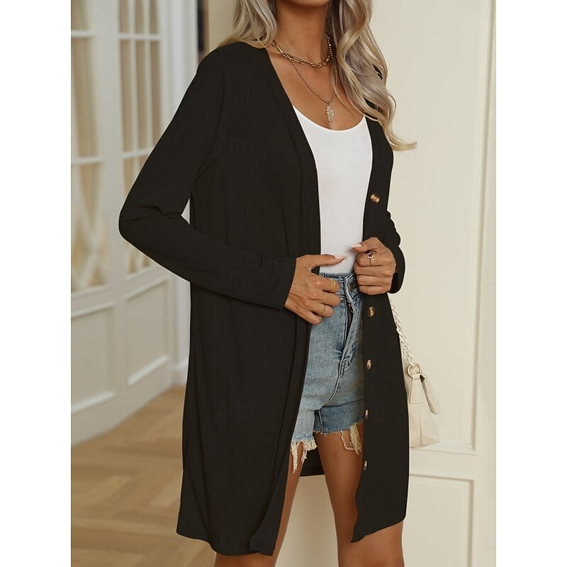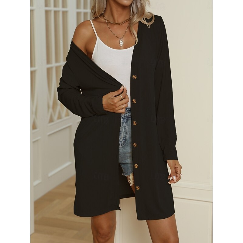 HOT ! Women's Casual Jacket Comfortable Breathable Buttons Casual Plain Vacation Street Casual Daily Wear Single Breasted Long V Neck Regular Fit Long Sleeve Outerwear Black White Blue Summer Spring