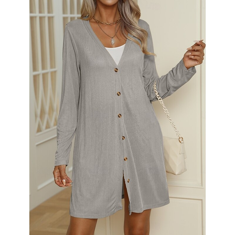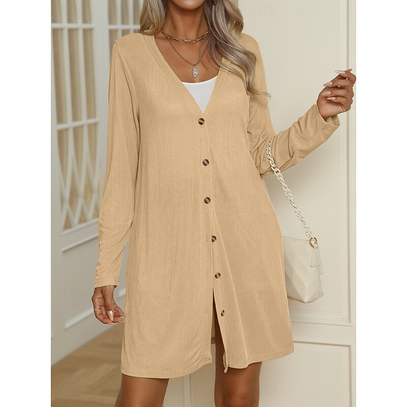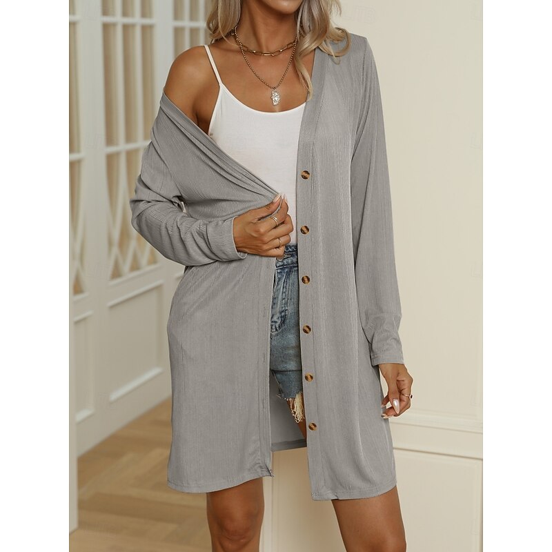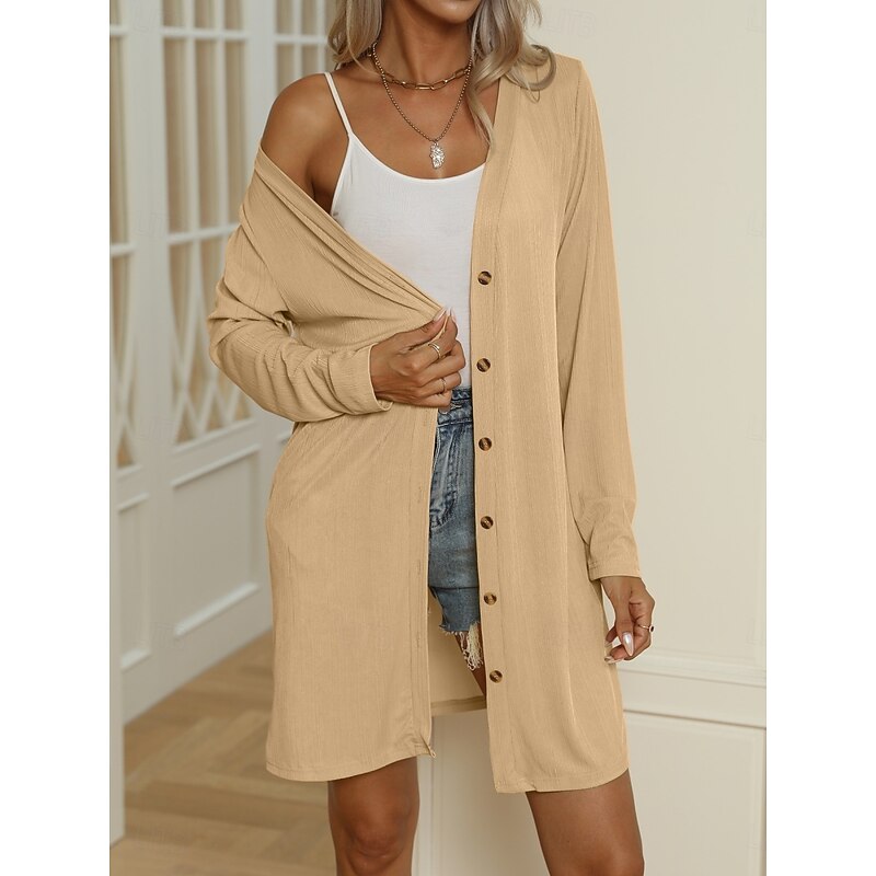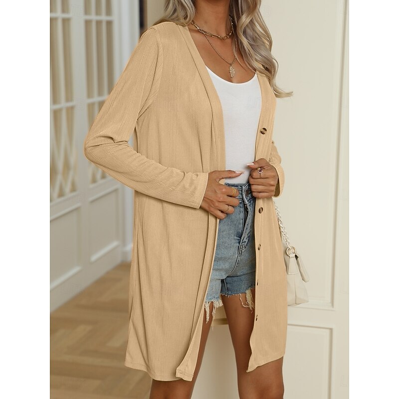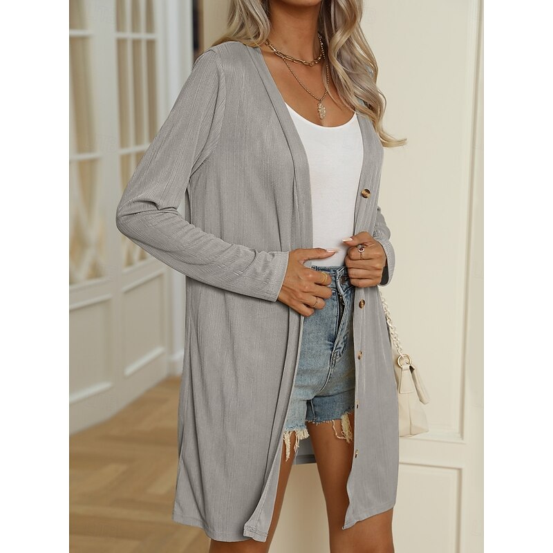 HOT ! Women's Casual Jacket Comfortable Breathable Buttons Casual Plain Vacation Street Casual Daily Wear Single Breasted Long V Neck Regular Fit Long Sleeve Outerwear Black White Blue Summer Spring