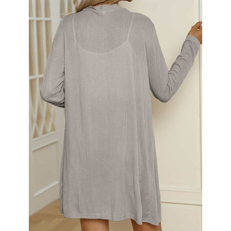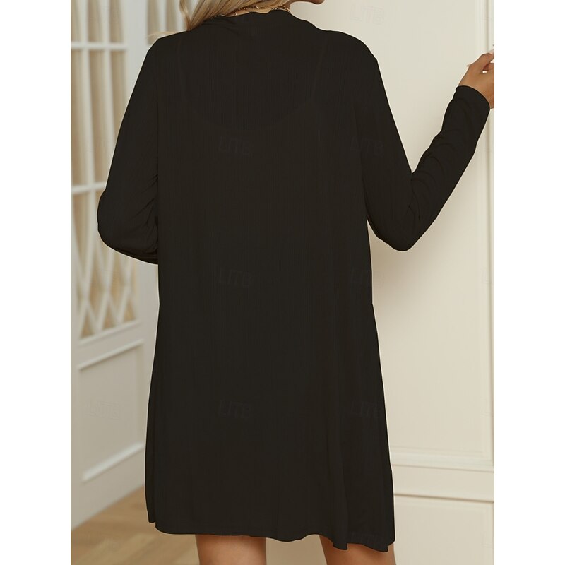 Women's Casual Jacket Comfortable Breathable Buttons Casual Plain Vacation Street Casual Daily Wear Single Breasted Long V Neck Regular Fit Long Sleeve Outerwear Black White Blue Summer Spring 26