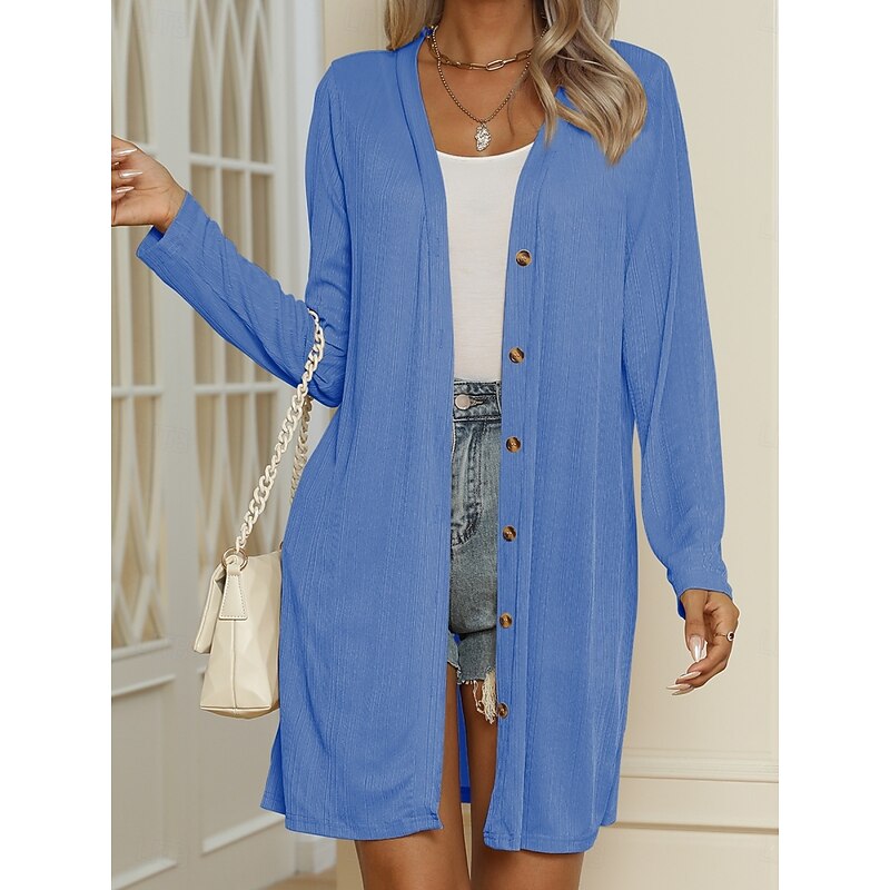 More information about Women's Casual Jacket Comfortable Breathable Buttons Casual Plain Vacation Street Casual Daily Wear Single Breasted Long V Neck Regular Fit Long Sleeve Outerwear Black White Blue Summer Spring