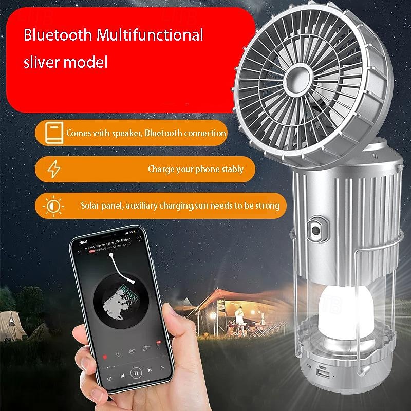 $29.99 - Solar Electric Fan Camping Lamp with Bluetooth Speaker Portable Switch Camping Lamp Lithium Battery Solar USB Charging 2025. Shop for cheap Camping Lights & Lanterns online? Buy at lightinthebox.com on sale today!