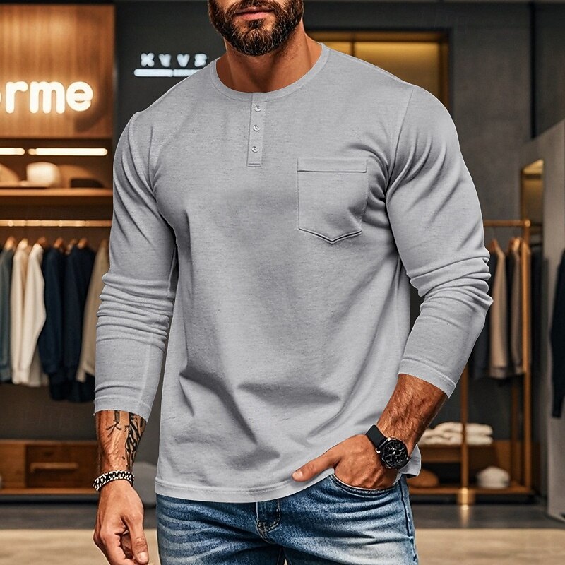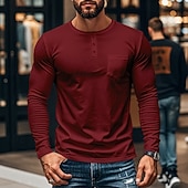 More information about Men's Button T Shirt T Shirt Henley Shirt Tee Long Sleeve Henley Spring & Fall Plain Fashion Designer Basic Pocket Vacation Street Going out Black White Red Top Tee for Men