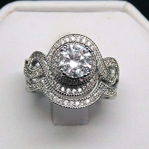- Timeless Elegance: The Bobbi Halo Pave Wedding Ring Set features a captivating halo design with a clear cubic zirconia center stone that radiates brilliance.