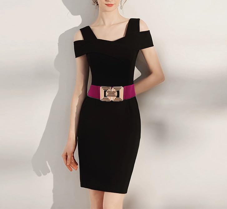 COTIM COYIN Women's Adjustable Elastic Belt With Gold Buckle for Pants Jeans Dresses