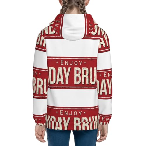 Retro Sunday Brunch Kids Pullover Hoodies Boys Zip Up Sweatshirts Girls Athletic Clothes with Pocket 5