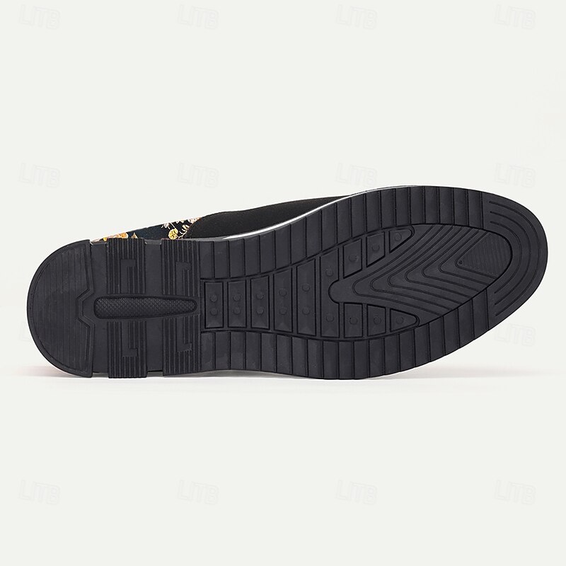 More information about Men's Black and Gold Floral Slip-On Sneakers – Trendy Jacquard Fabric Shoes for Casual Wear and Stylish Occasions