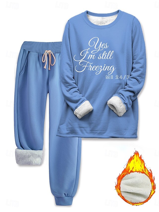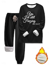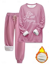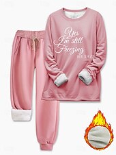 More information about Women's Warm Fashion Two Piece Sets Tracksuit Pants Sets Long Sleeve Bishop Sleeve Crew Neck Graphic Letter Print Outdoor Vacation Daily Black Pink Dark Pink Spring Regular Fit