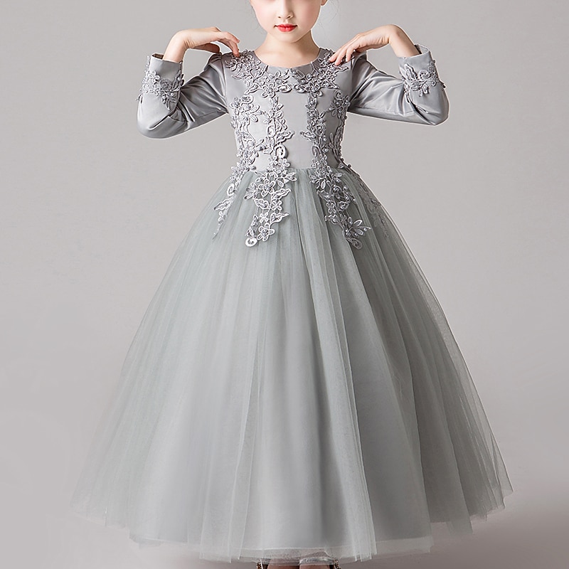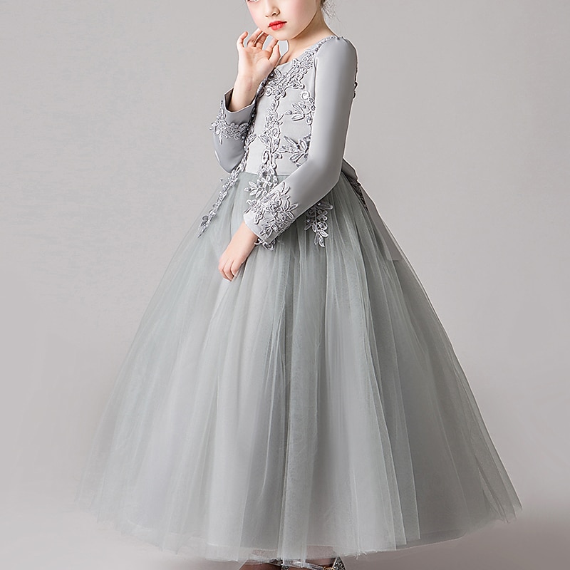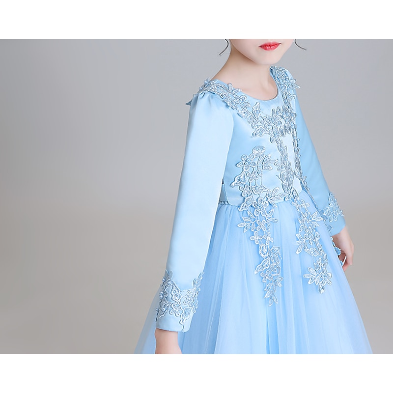 More information about Flower Girl Dress Girls' Dress Princess Dress Party Dress Formal Wedding Party Elegant Cute Formal Children's Day Mesh Floral Long Sleeve Crew Neck Beige White