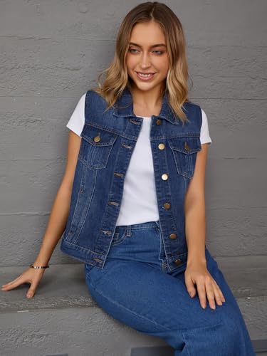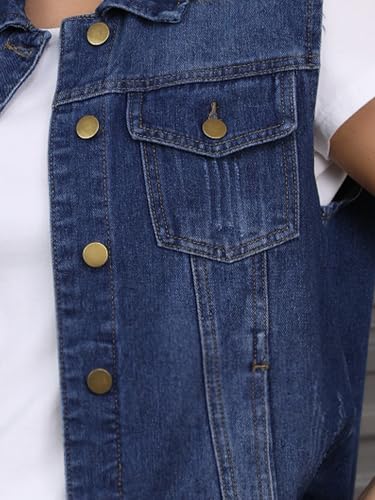 Women's Denim Vest Button Down Jacket W Chest Flap Pockets Washed Distressed Sleeveless Jean Jacket 4