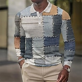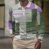 More information about Men's Waffle Polo Shirts Golf Shirt Long Sleeve Polo Shirts Collared Shirts Vintage Casual Vacation Wear Formal Wear Festival Wear Buttons 3D Print Fall & Winter Blue Purple Green