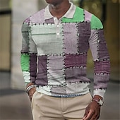 Men's Waffle Polo Shirts Golf Shirt Long Sleeve Polo Shirts Collared Shirts Vintage Casual Vacation Wear Formal Wear Festival Wear Buttons 3D Print Fall & Winter Blue Purple Green 3