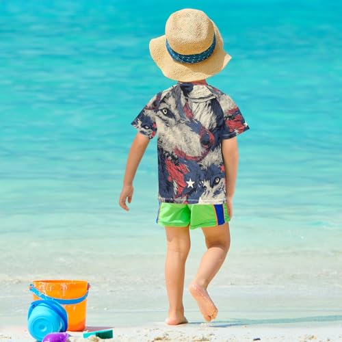 More information about Boys Short Sleeve T-Shirts Wolf Star Funny Animal Rashguard Kids Swim Shirts Sun UPF 50+