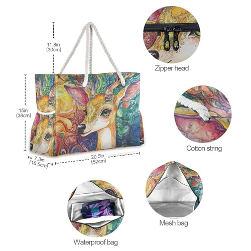 Boho Colorful Deer Sturdy Tote Bag Travel with side pocketes Carry On Bag for Travel Gym Vacation 5