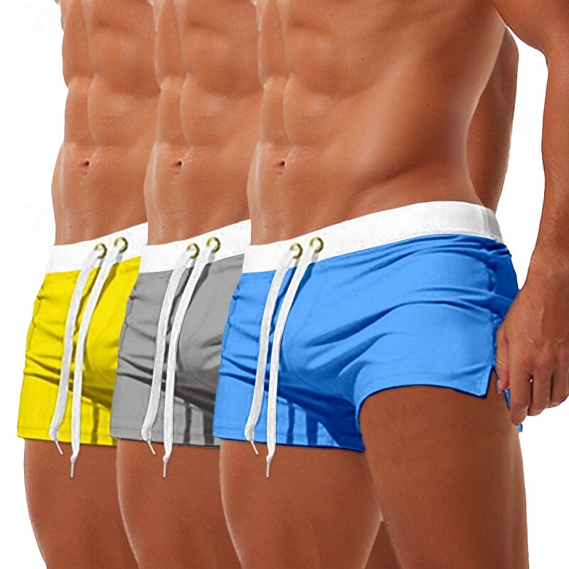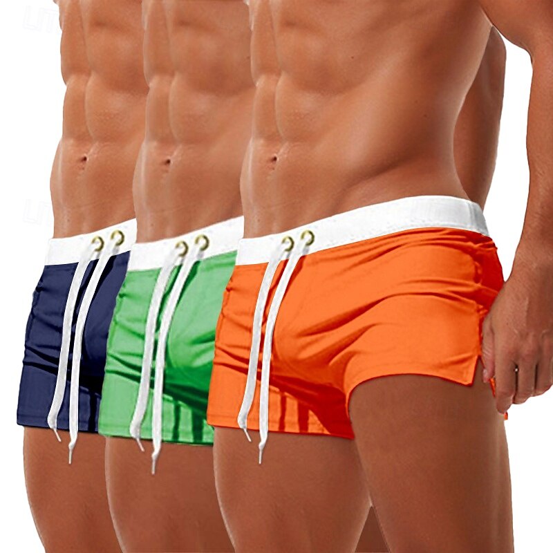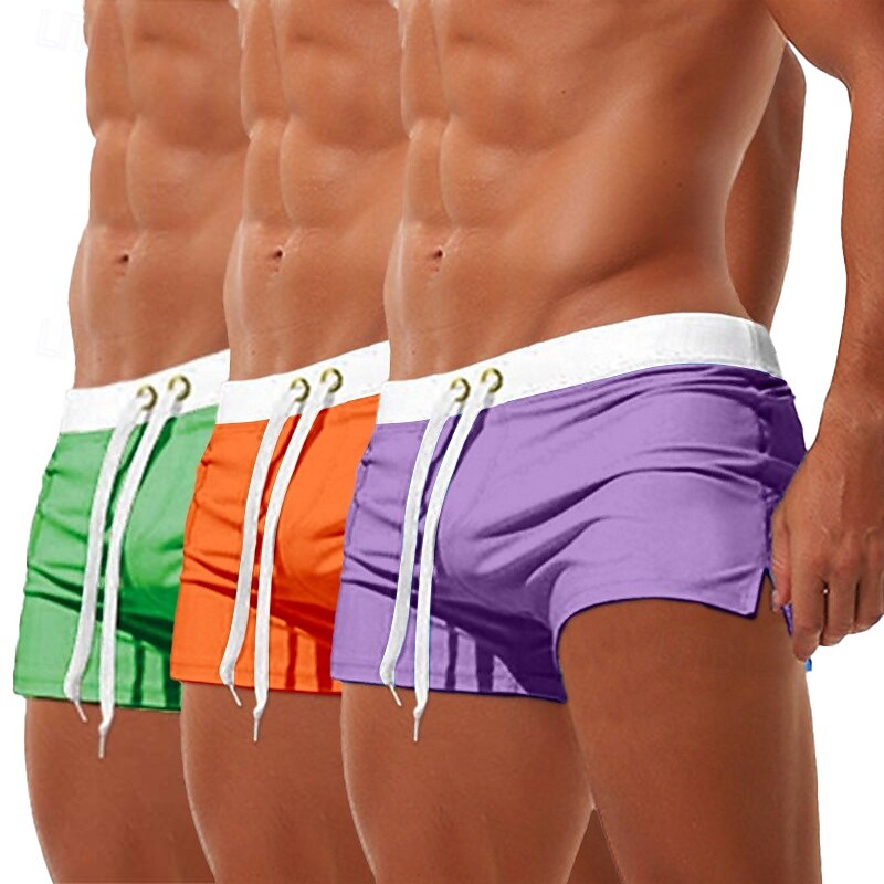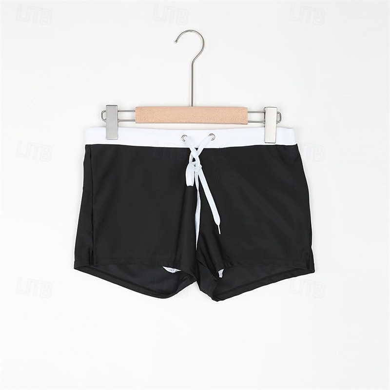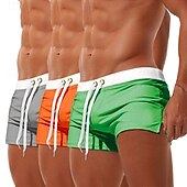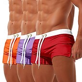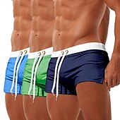 More information about 3Pcs Men's Swim Trunks Swim Shorts Board Swim Briefs Elastic Waist Drawstring Zipper Pocket Solid Color fast Dry Breathable Short Casual Daily Beach Fashion enduring Style Black Micro-elastic