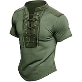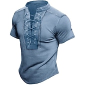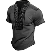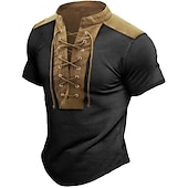 More information about Men's T Shirt Tee Short Sleeve Collar Summer Graphic Color Block Vintage Fashion Designer Lace up Print Casual Daily Sports Black Blue Brown Top Tee for Men