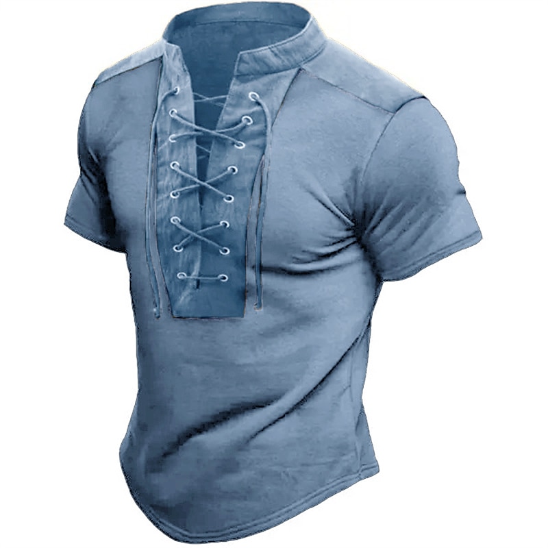 Men's T Shirt Tee Short Sleeve Collar Summer Graphic Color Block Vintage Fashion Designer Lace up Print Casual Daily Sports Black Blue Brown Top Tee for Men 10