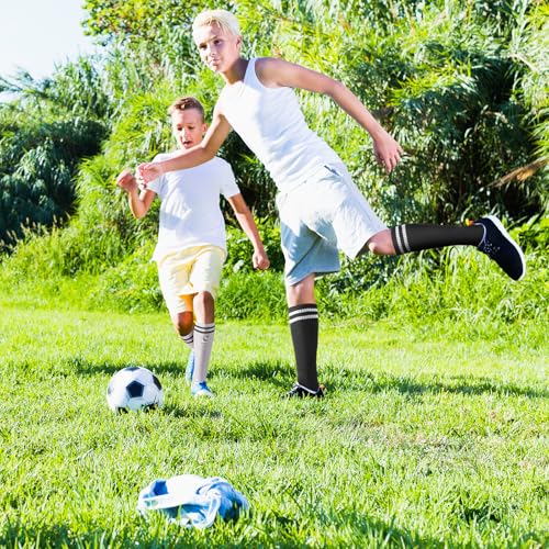 • Fit Size: Youth football socks are suitable for boys and girls aged 5-13, Colorful and fashionable stripe design on kids knee high soccer socks are straightforward to match with different clothes and shoes