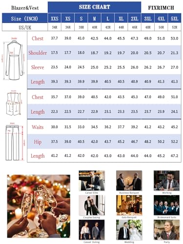 • Care instruction: Please check the size chart not Amazon size when you order the men suit. The men's wedding suits is recommended to be dry cleaned and low temperature ironing.Please hang the slim fit suit jacket up when you're not wearing them.Free customization of different colors and styles, please contact us if needed~