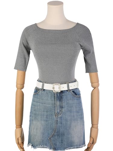 Women Faux Leather Pearl Buckle Belt, 1.2" Wide Waistband Waist Belts for Jeans Pants Dresses 6