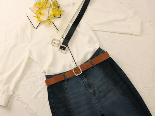Women Faux Leather Pearl Buckle Belt, 1.2" Wide Waistband Waist Belts for Jeans Pants Dresses 5