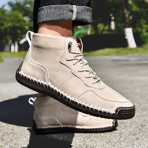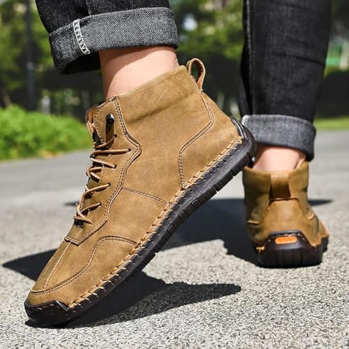 Men's Lace Up Italian Handmade Chukka Boots Men's Leather Handmade High Top Ankle Boots Non-Slip Waterproof Hiking Shoes 7