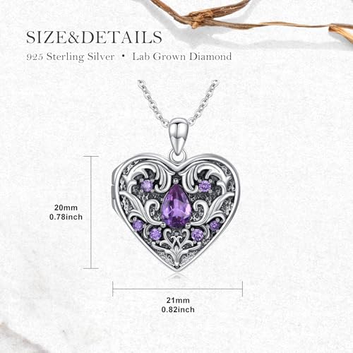 More information about Natural Gemstone Heart Locket Necklace for Women 925 Sterling Silver Locket Necklace That Holds Pictures Photo Custom Lockets Jewelry Personalized Genuine Amethyst Locket Gifts