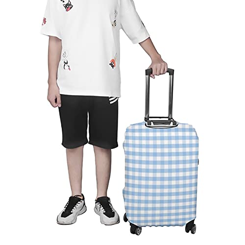HOT ! Fashion Suitcase Protector, Checkered Travel Suitcase Cover, Little Squares and Stripes Pastel Color Gingham, Fits 22-24 Inch Luggage, Washable Dustproof Anti-Scratch, Light Blue White