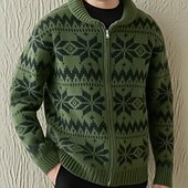 More information about Men's Ugly Christmas Sweater Christmas Sweaters Sweater Cardigan Sweater Ribbed Knit Regular Tops Knitted Plain Turndown Vacation Fashion Christmas Casual Clothing Apparel Winter Black White S M L