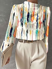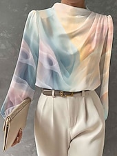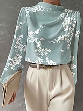 More information about Women's Blouse Floral Graphic Elegant Stylish Basic Long Sleeve High Neck Regular Tops Daily Print Pink Orange Beige Light Blue Spring Fall