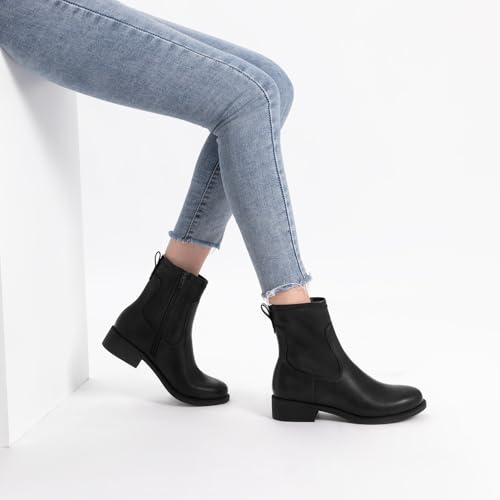 Athlefit Women's Ankle Boots Chunky Low Heel Fashion Round Toe Side Zipper Short Chelsea Boots 4