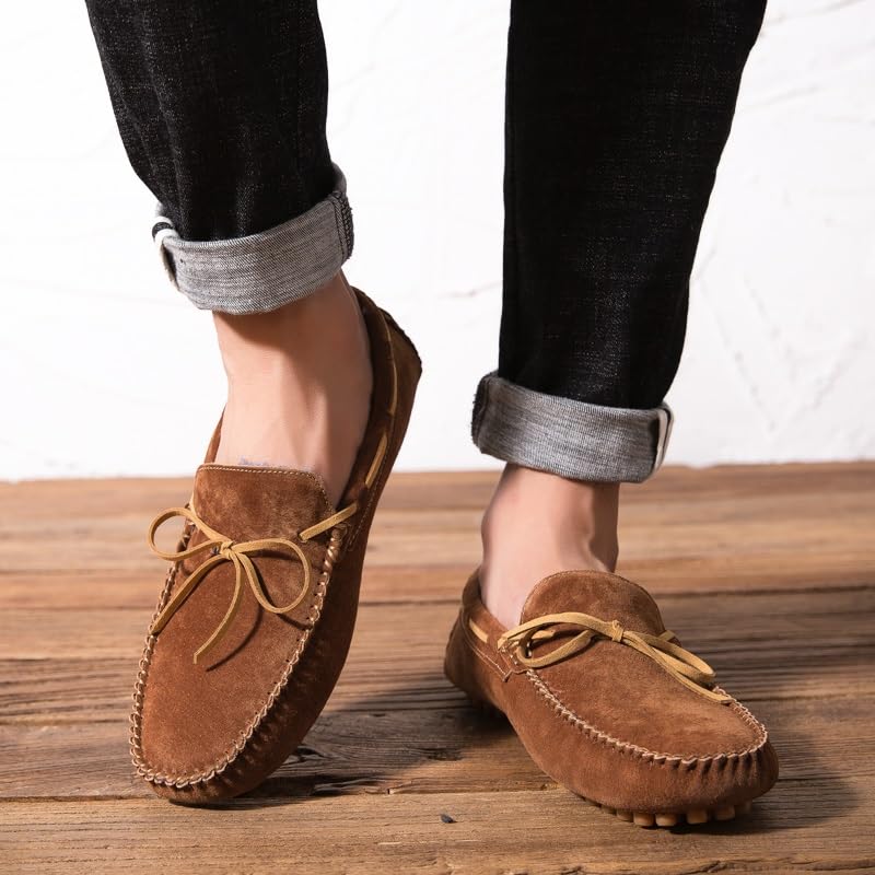 Why Choose Mens Loafers Suede Vamp Boatshoes Faux Fur Lining Driving Loafers Anti-Slip Flexible Flat Heel iconic Wedding Slip On?