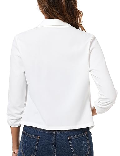 More information about White Blazer for Women 3/4 Ruched Sleeve Open Front Cardigan Shawl Lapel Business Casual Outfits Suit Jacket for Work Large Dressy Jackets