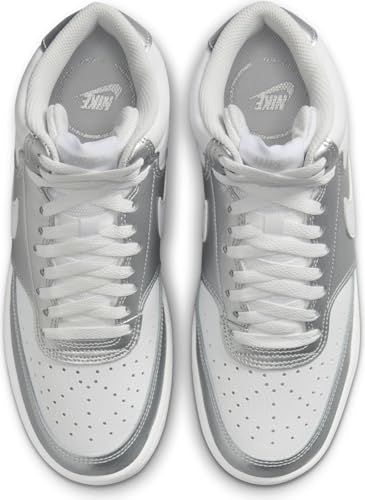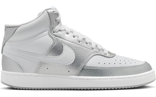 sought-after ! Nike Women's Court Vision Mid Trainers, White metallic silver, 9 Women
