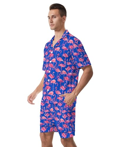• The Coconut Palm Tree men's loungwear set shirt featured with a button-front design and notched collar add a touch of sophistication,while the shorts designed with an elasticized waistband and side pockets which provides convenience and practicality to these Coconut Palm Tree pajamas for men.