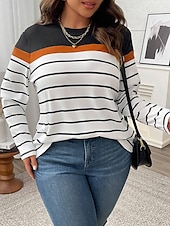 More information about Women's Plus Size Tops T Shirt Geometry Print Long Sleeve Crew Neck Casual Daily Polyester Fall Winter Black White