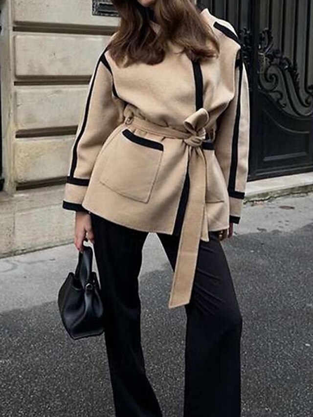 More information about Women's Winter Coat Warm Comfortable Lace up Pocket Fashion Outdoor Patchwork Outdoor Weekend Open Front Regular Stand Collar Regular Fit Long Sleeve Outerwear Apricot Fall Winter