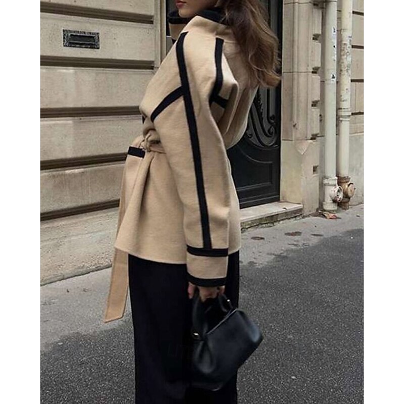 HOT ! Women's Winter Coat Warm Comfortable Lace up Pocket Fashion Outdoor Patchwork Outdoor Weekend Open Front Regular Stand Collar Regular Fit Long Sleeve Outerwear Apricot Fall Winter