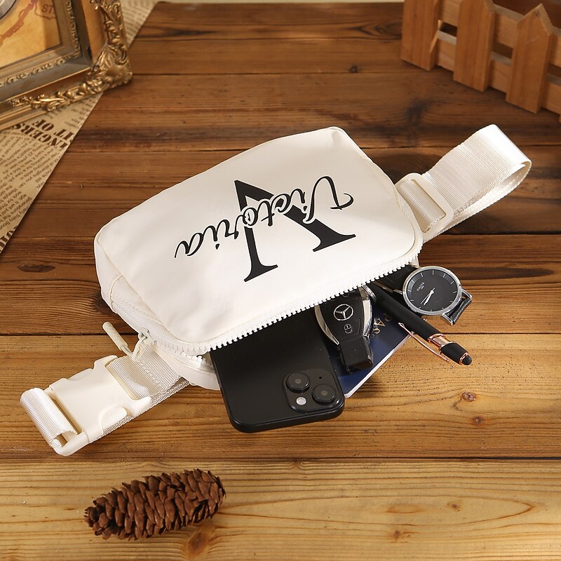 HOT ! Personalized Name White Crossbody Bag with Custom Initials, Minimalist Everyday Fashion Accessory – Unique Custom Gift for Friends