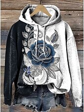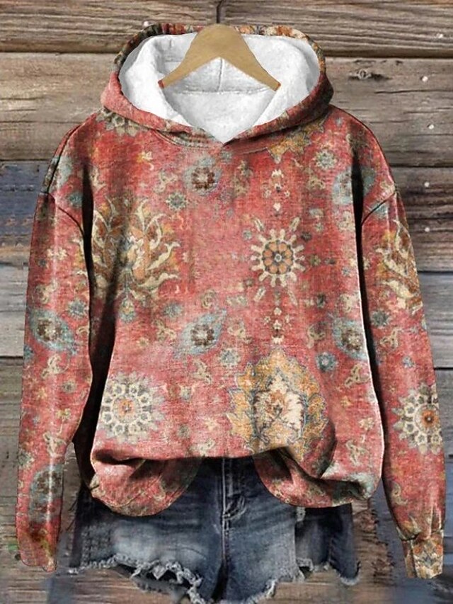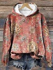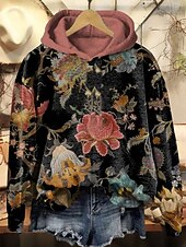 More information about Women's Pullover Hoodie Sweatshirt Floral Warm Vintage Western Long Sleeve Hooded Regular Tops Street Dailywear Vacation Wear Print Black White Pink Orange Brown Fall Winter
