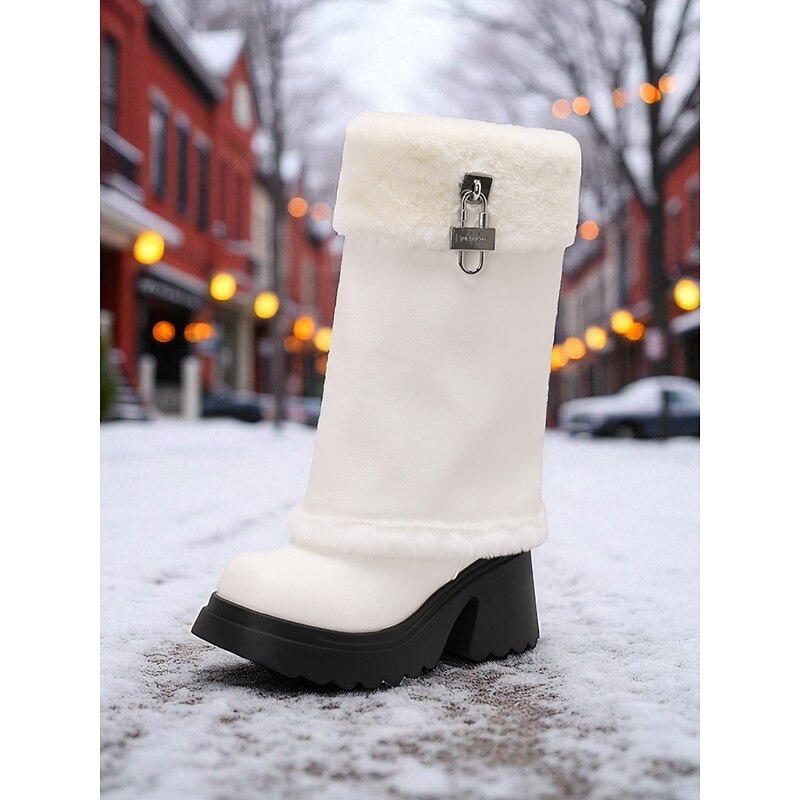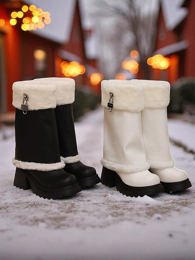 Highlights - Luxurious faux leather and faux fur upper materials - Stylish chunky heel for added comfort and stability - Classic round toe shape for a timeless look - Durable rubber outsole for long-lasting wear - Stay ahead of the fashion curve with trendy snow boots in 2025