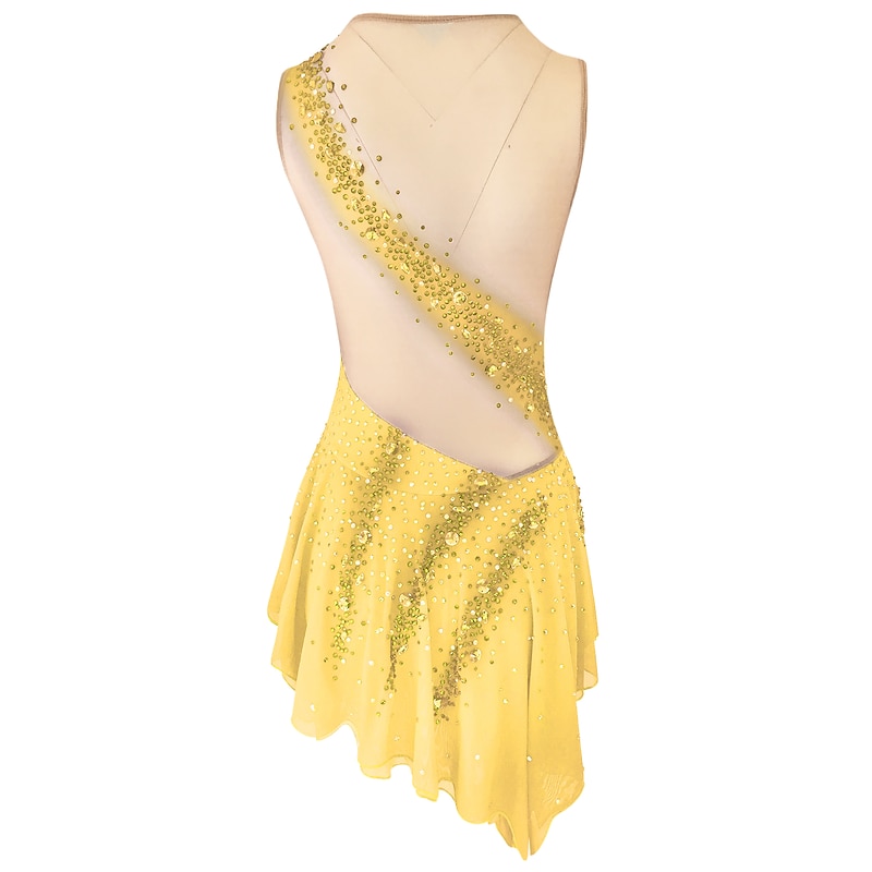 Figure Skating Dress Women's Girls' Ice Skating Dress Outfits Yellow & Yellow Dark Red Dark Navy Open Back Spandex Stretch Yarn High Elasticity Training Practice Competition Skating Wear Handmade 11