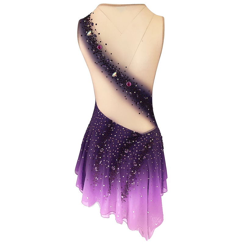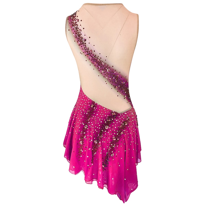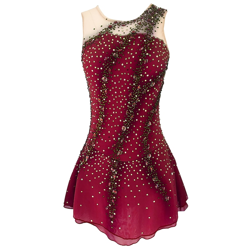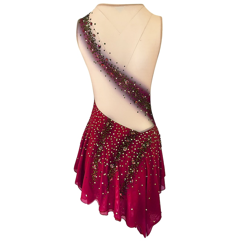 More information about Figure Skating Dress Women's Girls' Ice Skating Dress Outfits Yellow & Yellow Dark Red Dark Navy Open Back Spandex Stretch Yarn High Elasticity Training Practice Competition Skating Wear Handmade