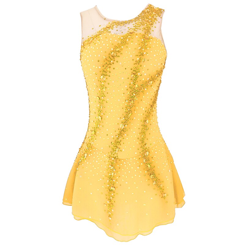 Figure Skating Dress Women's Girls' Ice Skating Dress Outfits Yellow & Yellow Dark Red Dark Navy Open Back Spandex Stretch Yarn High Elasticity Training Practice Competition Skating Wear Handmade 10