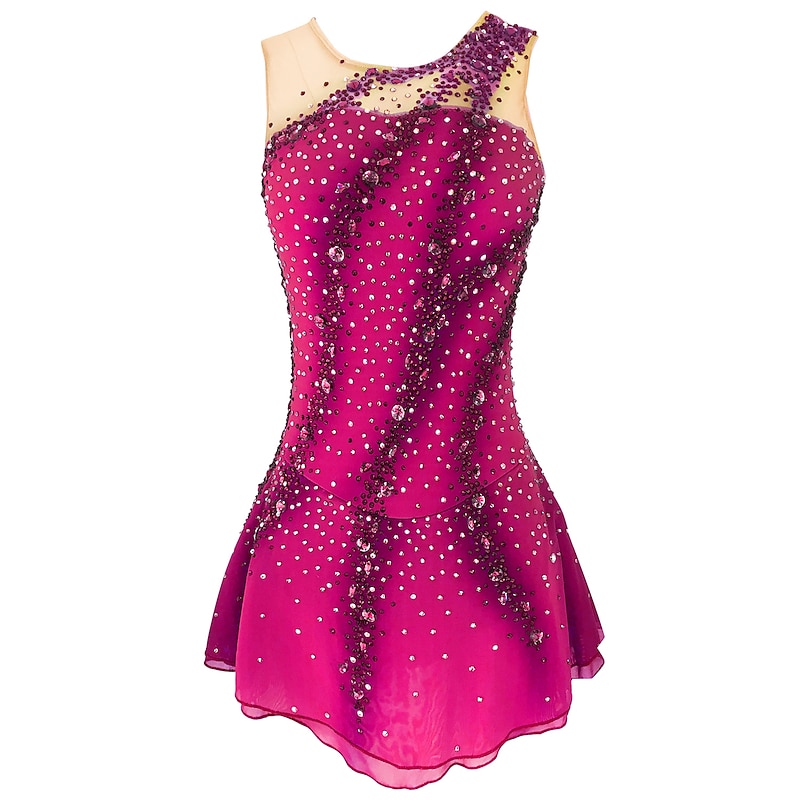 Figure Skating Dress Women's Girls' Ice Skating Dress Outfits Yellow & Yellow Dark Red Dark Navy Open Back Spandex Stretch Yarn High Elasticity Training Practice Competition Skating Wear Handmade 7