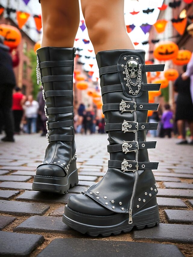 $64.99 - Women's Gothic Skull Platform Knee High Boots - Black Faux Leather Buckled Halloween Punk Rock Boots for Festivals, Cosplay and Streetwear 2025. Shop for cheap Shoes For Women online? Buy at lightinthebox.com on sale today!
