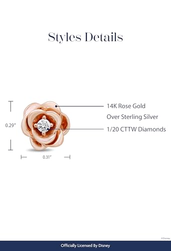 • Official Disney Jewelry: Enchanted Disney Fine Jewelry Belle Rose Stud Earrings for women crafted in 14K rose gold over sterling silver with 1/20 CTTW natural white round diamond accents. A charming princess-inspired rose design from Disney’s Beauty and the Beast.